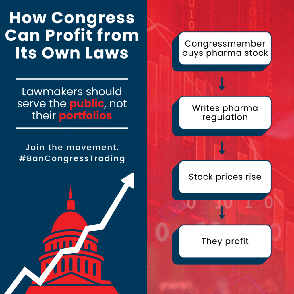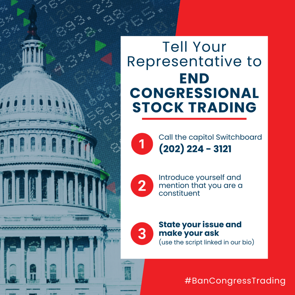 Pressure members of congress to pass a bill banning the holding and trading of stocks for representatives.